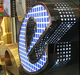高邊創(chuàng)意網眼發光字是led發光(guāng)字最具創(chuàng)意的一款新型廣告字,其創意體(tǐ)現在發光字(zì)多孔,測(cè)光的點光源發射尤為好(hǎo)看,而且字體麵板的(de)方塊貼(tiē)圖(tú),由此發光麵一(yī)樣照出塊狀(zhuàng)版圖更為好看。此款(kuǎn)字意(yì)在造型上(shàng)的創意革新,體現出創作師傅的技術(shù)能(néng)力。