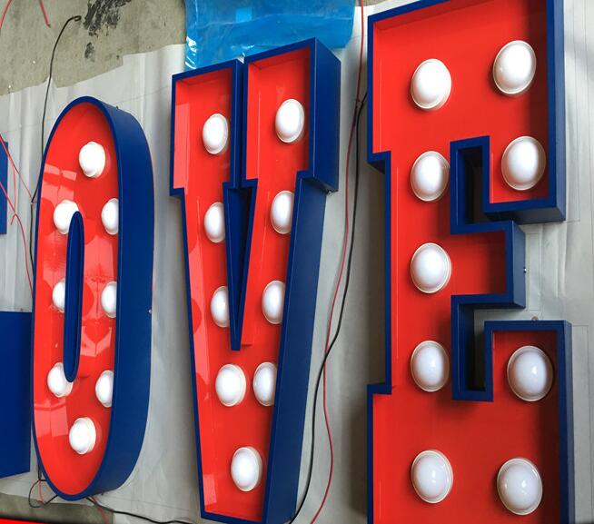 大(dà)燈泡字發光字led燈泡字招牌生鏽燈箱不(bú)鏽鋼穿(chuān)孔字點陣字(zì)製作。