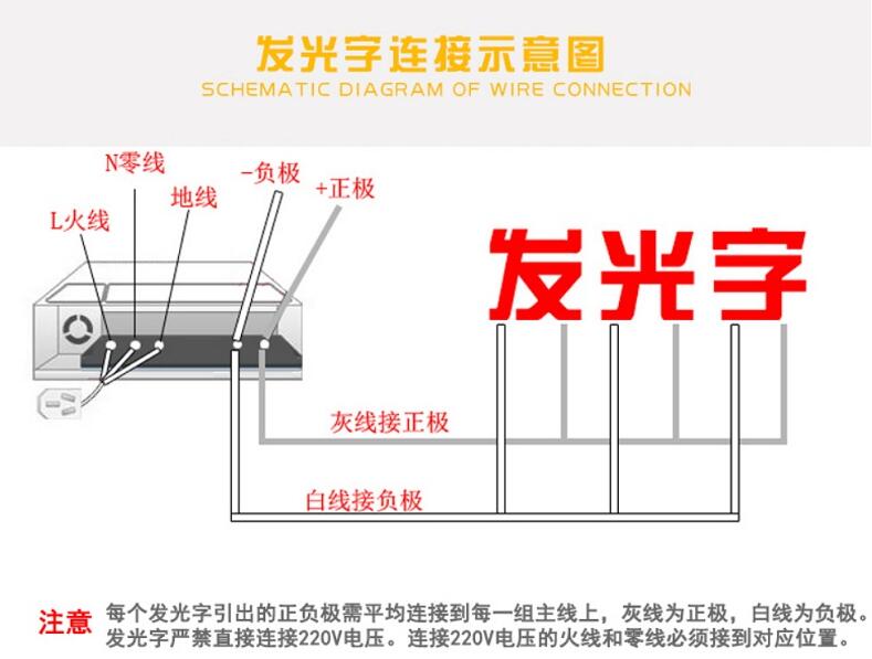 (發光字接線示意(yì)圖如上)