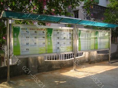 宣(xuān)傳欄按它的位置可(kě)以分為室內宣傳(chuán)欄以及戶外宣傳欄。室內宣(xuān)傳欄一般是貼牆式的(de),一般是在牆上架入支點撐起宣傳欄,框(kuàng)架(jià)一般是運用鋁合金或者不鏽幹製成,宣傳(chuán)欄外麵嵌入(rù)透(tòu)明玻璃,比(bǐ)且可以推動打開,有便於宣傳(chuán)欄裏麵內容的更換。這類宣(xuān)傳欄廣泛的運用於商會(huì)展覽及(jí)藝術展覽中,為觀光的顧客提供(gòng)各種信息。