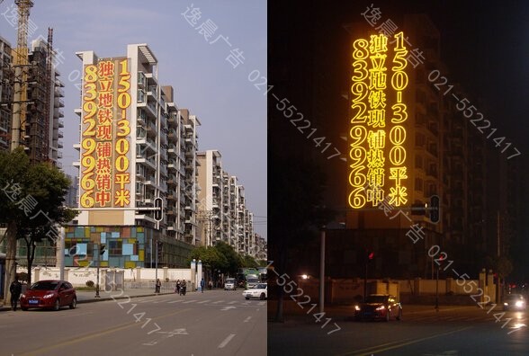 高強化率--超高頻次(cì),全時段、廣(guǎng)告時長;專業醒目設計(jì)、明亮(liàng)耀(yào)眼(yǎn)的燈光文字圖案、樓盤高聳的位置保證廣告有效接觸的頻次,並不斷強化,達到最佳的傳播效果。