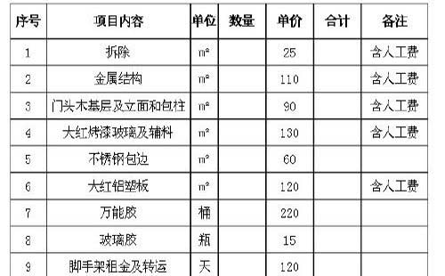如下圖所示(shì),門頭報價單根據所需要內容來決定價格。
