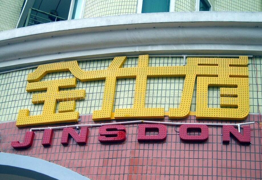 外(wài)露字可做多大:外露字一般無尺寸大小限製,可通過拚接製作各種大尺(chǐ)寸的外露字,是各種樓頂大型招牌的最愛;