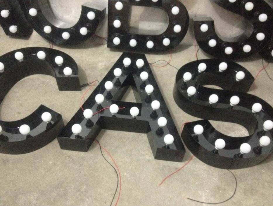 燈泡字是將每塊(kuài)烤漆顏色麵板上(shàng)都(dōu)裝上相應顏色燈泡,晚(wǎn)上打光時高亮(liàng)唯美,兼顧晝夜廣告效果。由於燈泡字擁有很強的耐(nài)候性能與,以單顆燈的形式安裝,不存在發光不均勻的現象。