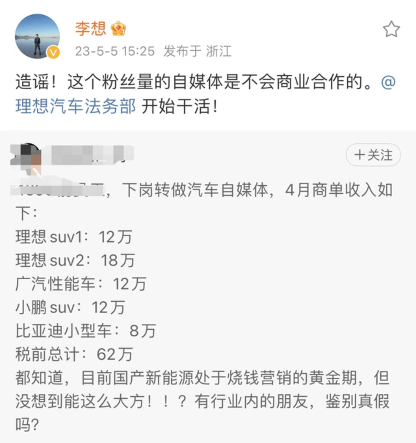 但對於特斯拉到底要不(bú)要投廣告這事(shì),似乎已有友商替它(tā)提前回答。前段時間,一位汽(qì)車博主發文表示,自己一個(gè)月內(nèi)接到(dào)了理想汽(qì)車兩份商單,賺(zuàn)了30萬元,但很快理想創始人李想就轉發該條微博稱該言論不實。